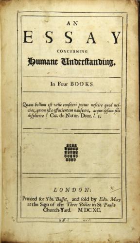 An essay concerning humane understanding. In four books. London: printed by Eliz. Holt, for Thomas Basset. MDCXC [1690].