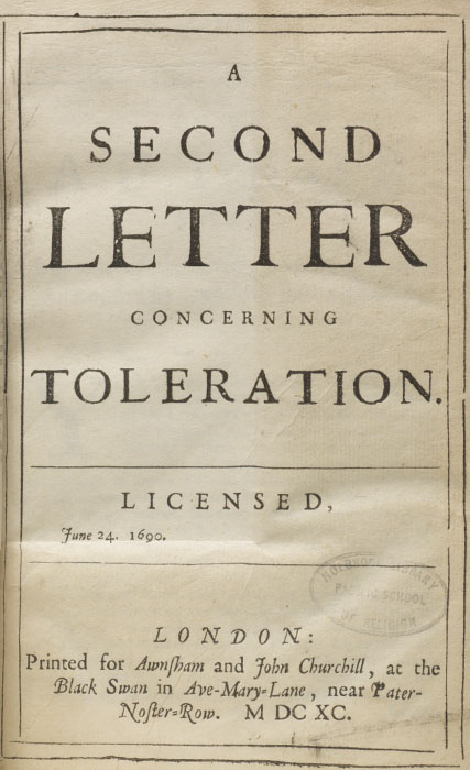 - A Letter Concerning Toleration. Humbly submitted, &c. Licensed, Octob. 3. 1689. London, printed for Awnsham Churchill.