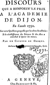 - Discours qui a remporté le prix a l’academie de Dijon , en l’année 1750. Sur cette question proposée par la même académie; si le rétablissement des sciences & des arts a contribué à épurer les moeurs. Barillot & fils, Geneva 1750.