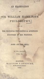 An Examination of William Hamilton’s Philosophy 1865. CW: IX.