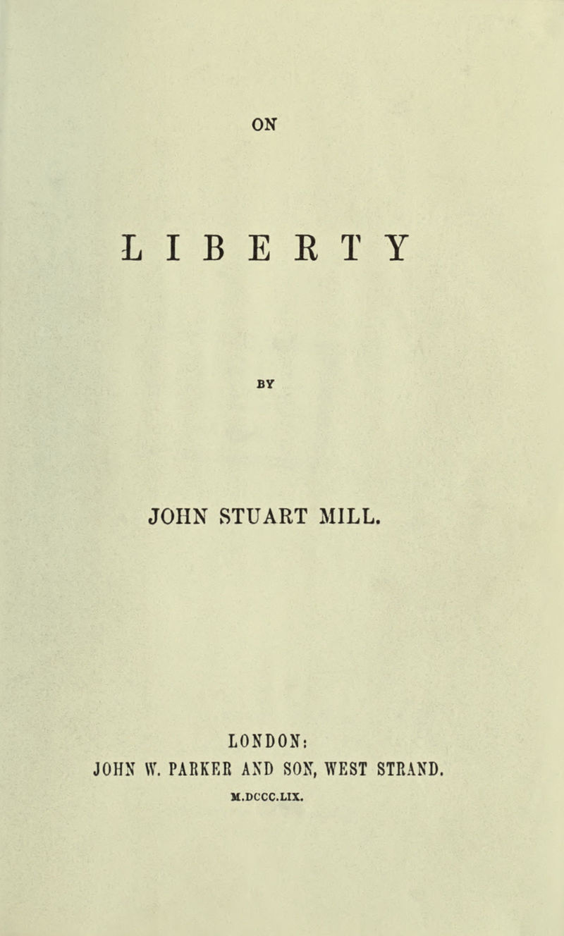 On Liberty. London: John W. Parker and Son, London 1859.