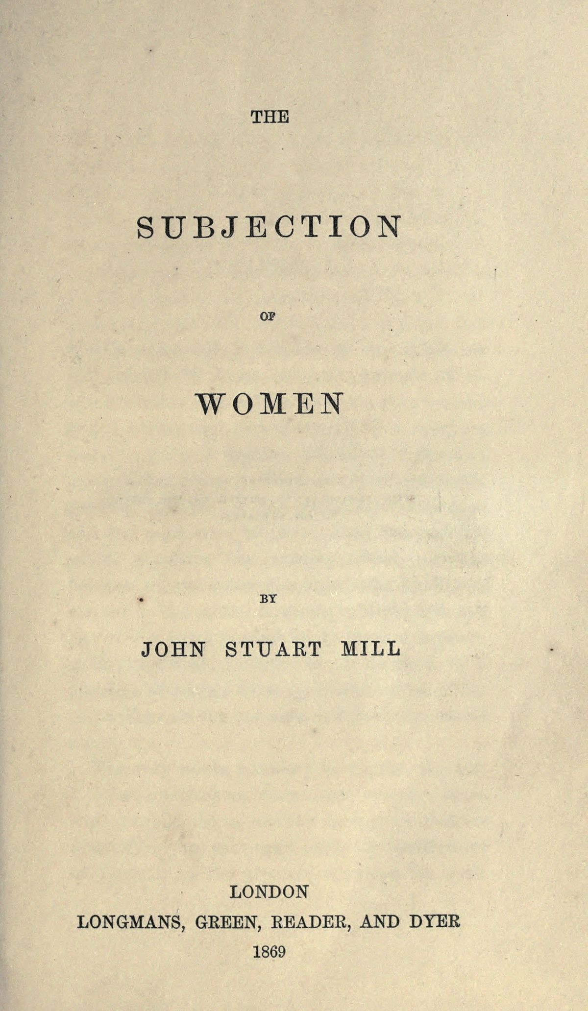 The Subjection of Women 1869