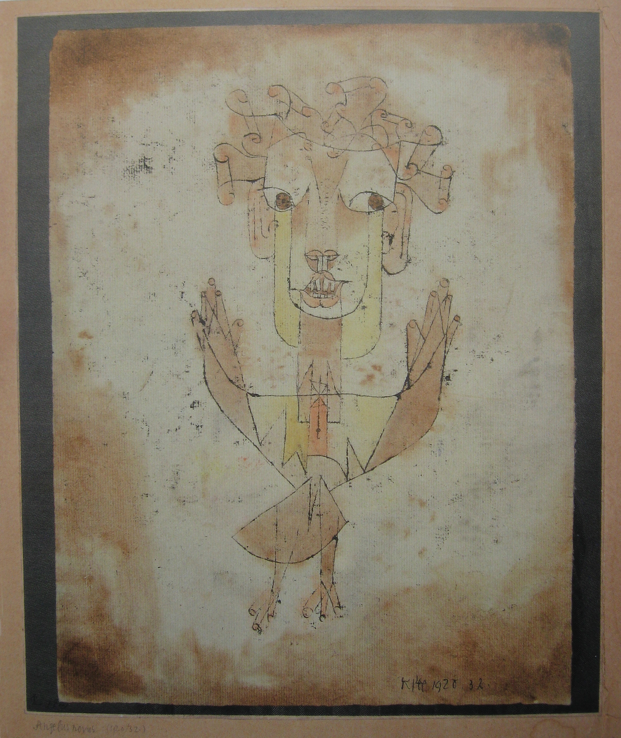 There is a image by Klee called Angelus Novus. It depicts an angel who seems about to move away from something he is staring. His eyes are wide, its mouth is open, his wings are spread. This is how the angel of history must look.